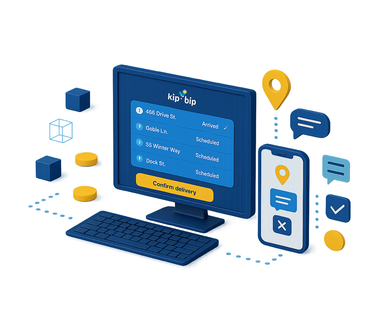 KipBip envía a cada chofer su recorrido actualizado directamente al celular. Con cada parada detallada, pueden marcar entregas, rechazos y observaciones desde la app.